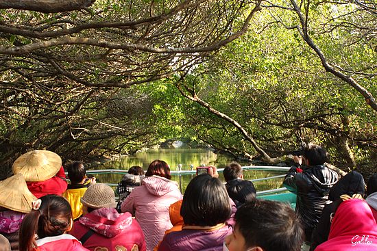 兩排茂密的紅樹林,生長角度剛好形成特殊的景觀