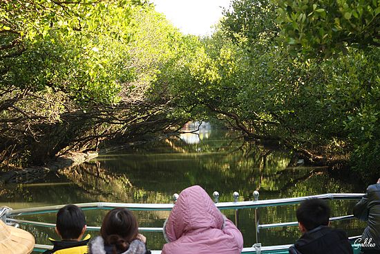 半圓形的樹拱門,再加上水面倒影,構成了天使之吻的美麗情境
