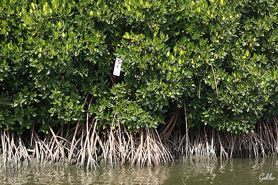別名五腳梨,主要特徵為樹幹長出許多氣根,斜垂入泥地成為支持根,樹形優美